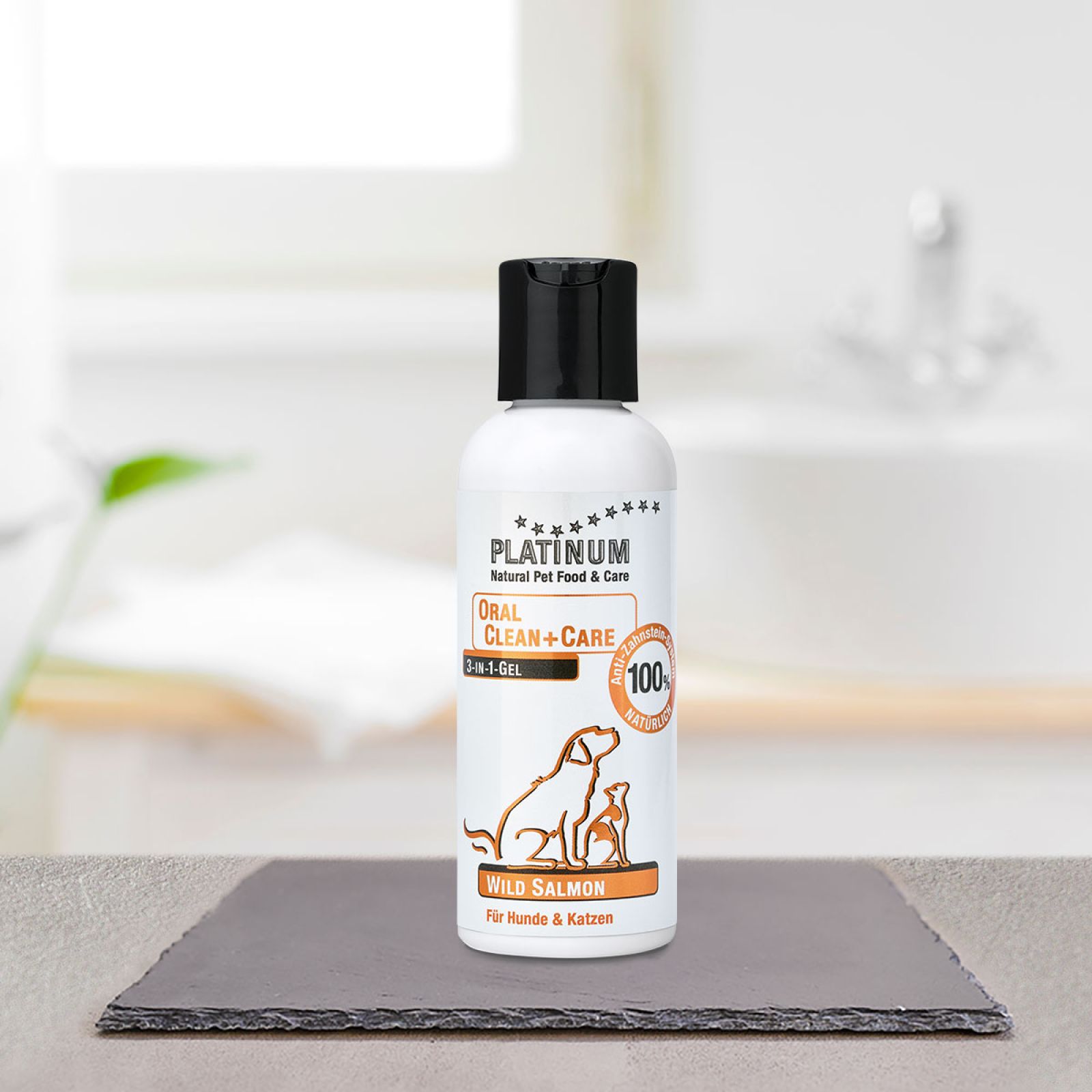 OralClean+Care Salmon Oil contains additional salmon oil, has a somewhat milder taste than the Classic, and many animals prefer it.